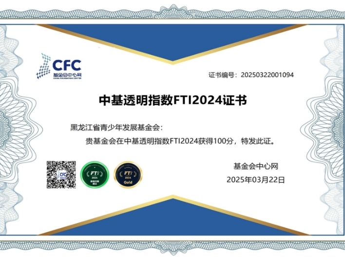 黑龍江省青少年發(fā)展基金會再獲“中基透明指數(shù)FTI2024”滿分