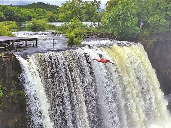 壯觀!鏡泊湖三面飛瀑