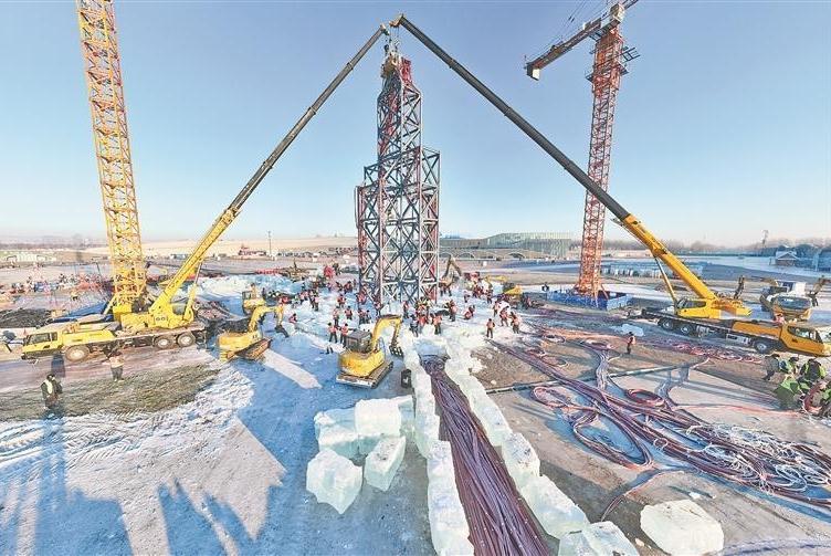 冰雪大世界主塔“冰燈啟夢”封頂