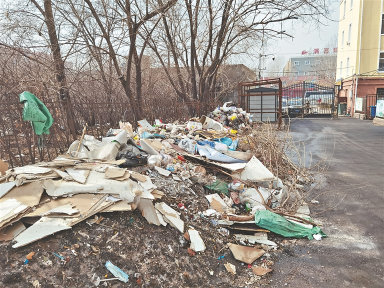 南崗區(qū)學(xué)府路300號(hào)至308號(hào)之間,是一片改造后的老舊小區(qū),一側(cè)大門還有戴紅袖標(biāo)的人員看守。進(jìn)入后,道路一側(cè)出現(xiàn)了垃圾帶,生活垃圾、裝修垃圾、放棄雜物和殘冰殘雪,堆出了20米的“長(zhǎng)龍”。據(jù)這里的居民介紹,小區(qū)沒(méi)有物業(yè),衛(wèi)生由街道管理。“由于長(zhǎng)期不外運(yùn),天熱的時(shí)候,這里的垃圾會(huì)很臭。其實(shí)小區(qū)環(huán)境還不錯(cuò),就是缺少管理?!?/span>