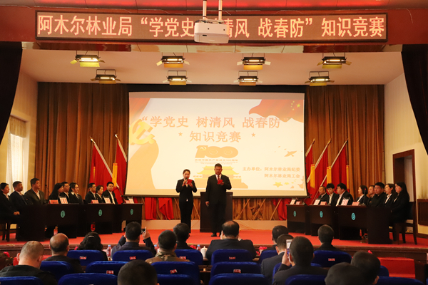 阿木爾林業(yè)局舉辦舉辦“學(xué)黨史、樹清風(fēng)、戰(zhàn)春防”知識(shí)競(jìng)賽現(xiàn)場(chǎng)。