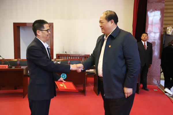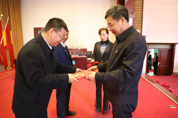 阿木爾林業(yè)局黨委書記胡守慶(右)為獲得第一名代表隊(duì)頒發(fā)榮譽(yù)證書。