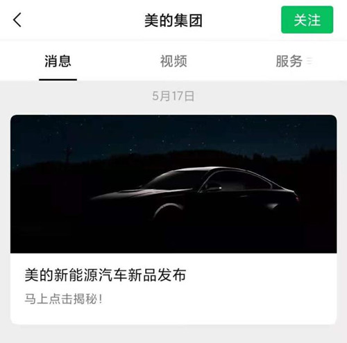 5月17日,美的集團(tuán)在其官方公眾號(hào)發(fā)文,預(yù)告將發(fā)布新能源車(chē)相關(guān)新品,并配有一張若隱若現(xiàn)的汽車(chē)宣傳海報(bào)。此舉一下激起市場(chǎng)猜測(cè):難道美的也要造車(chē)了?