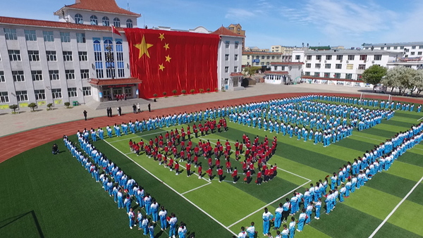童心永向黨、歡歌慶六一,呼瑪縣第一小學(xué)的操場上,由全校600余名師生共同組成黨徽、100的造型圖案,在四層樓高的巨幅國旗映襯下,蔚為壯觀,一面面小紅旗在學(xué)生們手中揮舞,師生們懷著崇敬的心情,共同演唱《沒有共產(chǎn)黨就沒有新中國》。氣勢磅礴的開場節(jié)目,表達了呼瑪縣廣大師生學(xué)黨史、頌黨恩、跟黨走,隆重慶祝建黨100周年的激動心情。