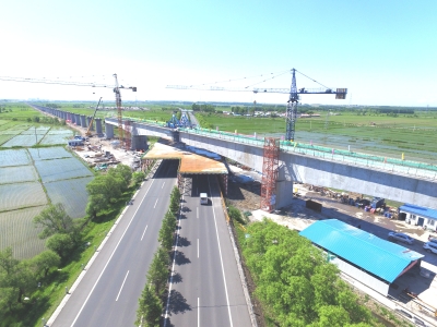 跨鶴大高速公路特大橋位于黑龍江省鶴崗市境內(nèi),連續(xù)梁的合龍模式為先邊跨、后中跨,該橋全長(zhǎng)8393.84米,是全線最長(zhǎng)的特大橋和控制性工程。