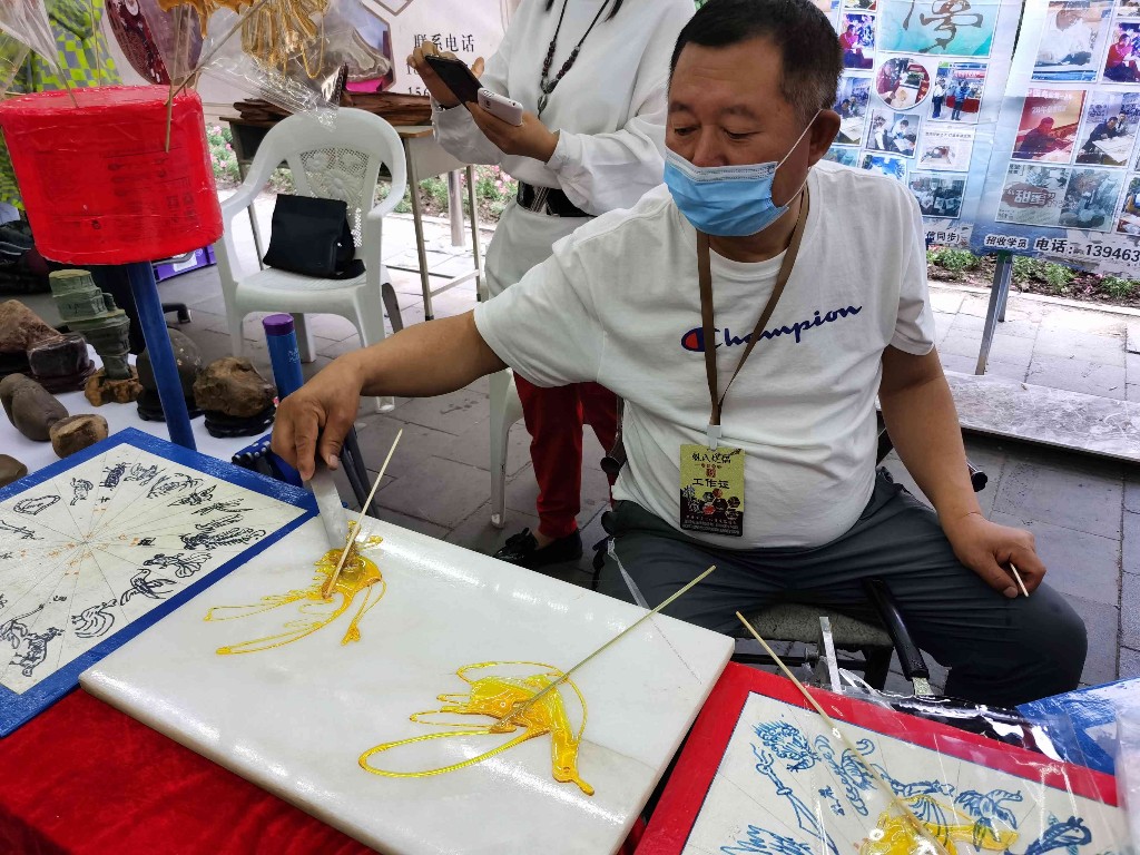 距離魁氏燒鍋釀造技藝展柜還有一段距離,就能聞到濃郁甘醇的酒香,流水宴賓朋的造型吸引了一大批酒文化愛好者駐足;姚氏糖畫技藝展柜旁,圍了不少小朋友和“大朋友”,“我小時(shí)候特別迷牡丹江市愛民區(qū)兒童公園旁邊賣的糖畫,每次路過都央求爸爸給我買個(gè)‘龍’,活靈活現(xiàn)的!”市民回憶說。