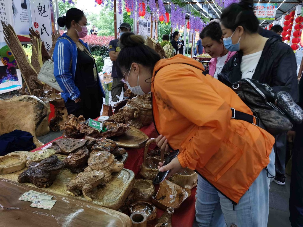 記者在現(xiàn)場看到,牡丹江北山公園的廣場上游人如織,許多市民爭先在網(wǎng)紅月亮秋千、心形燈廊下合影留念。用手機(jī)挨個(gè)展柜拍照,記錄下牡丹江非物質(zhì)文化遺產(chǎn)。