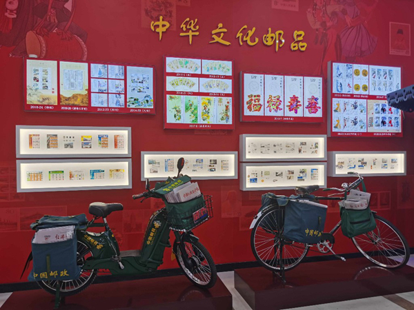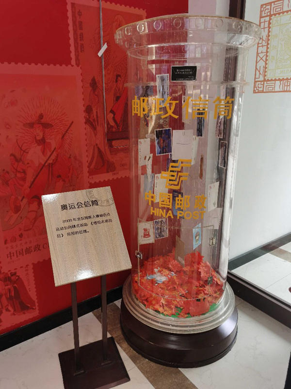 一進(jìn)門右手邊,是一個透明的郵政信筒,它來自2008年北京殘奧會閉幕式,現(xiàn)場有很多人通過它投遞出了《寄給未來的信》。左右兩側(cè)的墻上,懸掛著中華文化郵品,用郵票的形式展示傳統(tǒng)文化,重陽節(jié)、梅蘭芳舞臺藝術(shù)、景德鎮(zhèn)瓷器等具有紀(jì)念意義的郵票都位列其中,這里是集郵愛好者的天堂。