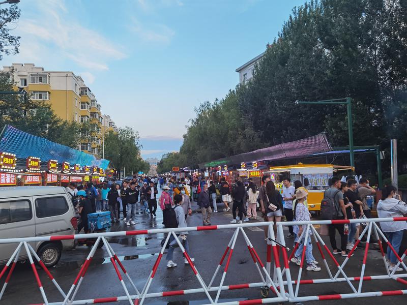 夜市內(nèi)還有警車(chē)值守。民強(qiáng)派出所的郝警官說(shuō),她在老太平居住了近50年,目睹了各色夜市的興衰,這夜市是最大也是最好的小吃夜市,肯定會(huì)生存發(fā)展下去?!敖衲?月就開(kāi)始試運(yùn)營(yíng)了吧,5月初正式營(yíng)業(yè),管理比較規(guī)范。是道外區(qū)城管局和民強(qiáng)街道辦的招標(biāo)項(xiàng)目,是政府引導(dǎo)和規(guī)劃的夜經(jīng)濟(jì)發(fā)力點(diǎn)。”