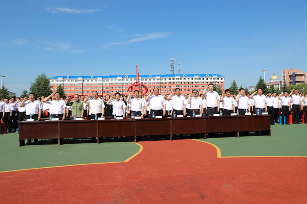 林業(yè)局黨委副書記呂光鑫為慶賀中國共產(chǎn)黨成立100周年致辭。匯演前,舉行了新黨員入黨宣誓及重溫入黨誓詞活動。只見鮮紅的黨旗在4名護(hù)旗手的佑護(hù)下走到廊臺中央,7名新黨員精神飽滿地走上臺,林業(yè)局領(lǐng)導(dǎo)胡守慶、韓鳳泉、呂光鑫、高樹源、劉麗、雄偉、王飛走上臺,為新黨員佩戴黨徽。在場黨員全部起立,面向黨旗莊嚴(yán)宣誓,“我志愿加入中國共產(chǎn)黨……”誓詞的聲音響徹廣場上空。