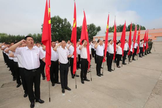 在蒙克山分會場,黨總支書記為各支部書記授予黨旗,一名黨員就是一面旗幟,一個支部就是一座堡壘,一面面鮮紅的黨旗,是一份沉甸甸的責(zé)任與使命。