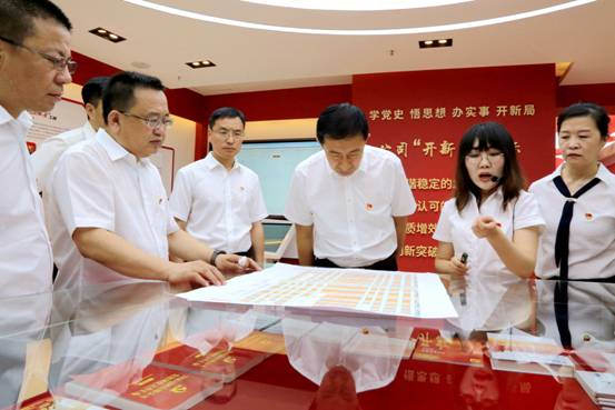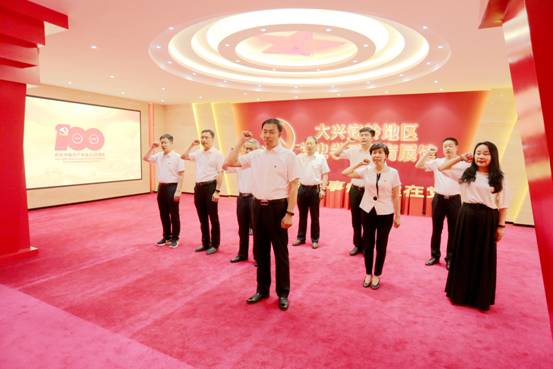 在地區(qū)黨史學(xué)習(xí)教育展館,面對(duì)鮮紅的黨旗,由區(qū)委書(shū)記王顯志領(lǐng)誓,區(qū)委理論學(xué)習(xí)中心組成員集體宣誓,重溫入黨誓詞,砥礪前進(jìn)初心,勇?lián)氊?zé)使命。