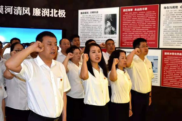 在漠河市廉政教育基地,塔河林業(yè)局研學(xué)交流團(tuán)成員在講解員生動(dòng)的講解下,依次參觀了“以古鑒今 廉潔中華”、“正風(fēng)肅紀(jì) 馳而不息”、“前車(chē)之鑒 警鐘常鳴”、“清正為民 廉潔風(fēng)范”四個(gè)篇章。通過(guò)一個(gè)個(gè)觸目驚心的腐敗案例、一幅幅發(fā)人深省的圖片和當(dāng)事人的懺悔實(shí)況錄像,對(duì)現(xiàn)場(chǎng)每一個(gè)人給以強(qiáng)烈的心靈震撼,進(jìn)一步提高了大家對(duì)反腐倡廉重大意義的認(rèn)識(shí)和感悟,筑牢防腐拒變思想防線。在深受警示教育的同時(shí),研學(xué)交流團(tuán)全體黨員干部高舉右拳,面對(duì)黨旗莊嚴(yán)宣誓,重溫入黨誓詞,并在“廉潔宣誓化于心,廉潔承諾重于行”橫幅上鄭重簽下自己的名字,表達(dá)了一定要樹(shù)牢不忘初心、勇?lián)姑⒘疂崗恼男拍詈蜎Q心。