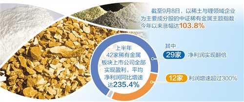 近幾個月,A股稀有金屬板塊呈現(xiàn)上漲行情。截至9月8日,以稀土與鋰領(lǐng)域企業(yè)為主要成分股的中證稀有金屬主題指數(shù)今年以來漲幅已達(dá)103.8%。