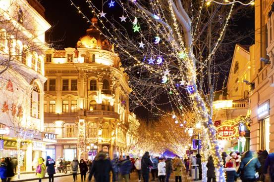 走在中央大街,腳踩價值千金的面包石,不同時期不同風(fēng)格的歐式建筑物依次映入眼簾。來到這條老街怎能不在零下20度的數(shù)九寒天里排隊買一根馬迭爾冰棍,再嘗嘗具有東北特色的“東北大板”和冰糖葫蘆,餓了就來一根哈爾濱特色烤紅腸,走累了再去街邊的俄式西餐館坐坐,嘗嘗地道的俄餐,暖心又暖胃。