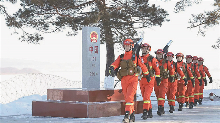 8時整,漠河市大隊十三中隊消防救援人員準備完畢后,與北極派出所民警一同踏上了北極村邊境線及周邊林區(qū)進行巡護。