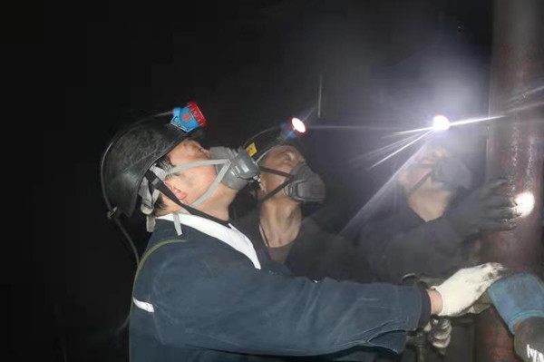 李鳳明領(lǐng)著當(dāng)班職工組織停工檢查 (圖片由龍煤雙鴨山公司提供)