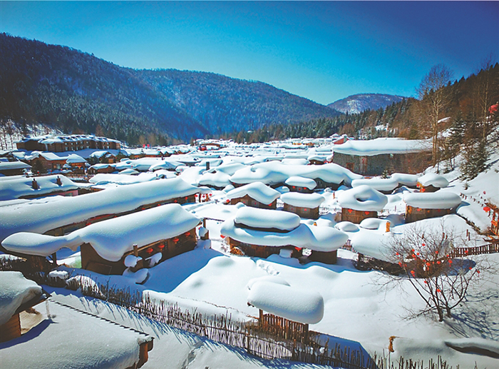 屋頂積雪如流淌的奶油,如玉的白雪在大紅燈籠的照耀下宛如松軟的雪蛋糕……被冰雪裝點(diǎn)的中國雪鄉(xiāng),是極具雪韻美景的地方。更令人叫絕的是,因貝加爾湖冷空氣與日本海暖濕氣流的頻繁交匯以及特殊地形影響,這份神奇的雪景存在的時間特別長,每年的積雪期長達(dá)7個月,是中國雪量最大、雪粘稠度最高的地方。