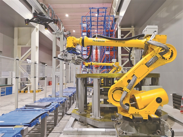 電機公司智能疊片車間機器人自動疊片生產(chǎn)線。