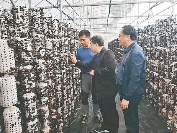 科研人員對黑木耳規(guī)?;a(chǎn)進行技術(shù)指導。