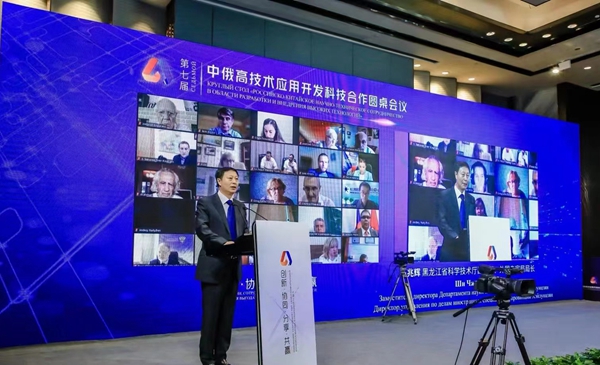 科學技術部國際合作司副司長徐捷在致辭中指出,近年來,借助中俄地方合作交流年、中俄科技創(chuàng)新年等國家級主題年,我們共同舉辦了千余項富有成效的科技創(chuàng)新交流活動,在全球疫情影響下,中俄兩國在完善雙邊創(chuàng)新合作機制、落實重點創(chuàng)新項目研發(fā)計劃、推進大科學工程、建設重點實驗室、青年學者交流以及組織會展活動等方面均取得了豐碩成果。作為歷屆圓桌會議的中方主辦城市,哈爾濱正逐步成為全國對俄科技合作最活躍、國家級對俄科技合作基地數(shù)量最多、對俄科技服務能力最強的城市之一。希望哈爾濱在中俄科技創(chuàng)新領域持續(xù)發(fā)力,聯(lián)合京津冀、長三角和珠三角等地區(qū),共同推動建立中俄國家層面和地方層面合作新機制。