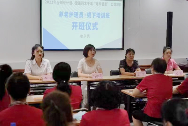 黑龍江經(jīng)濟網(wǎng)訊(王巖)為進一步培養(yǎng)養(yǎng)老護老專業(yè)人才,提升養(yǎng)老護理員隊伍職業(yè)化、專業(yè)化水平,7月26日,由中國婦女發(fā)展基金會與愛茉莉太平洋發(fā)起,哈爾濱市婦聯(lián)指導(dǎo),黑龍江龍妹職業(yè)技能培訓學校承辦的“愛茉莉太平洋‘她來管家’女性賦能公益項目”養(yǎng)老護理員線下培訓班正式開班,來自各區(qū)縣社區(qū)的34名學員參加了開班儀式。