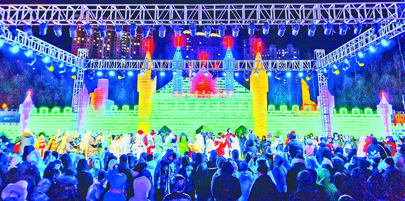 在雪地上潑雪、打鬧,人們身上沾著雪,頭上冒著汗,臉上帶著笑……這里是一片歡樂的海洋。變形金剛、小黃人、冰雪奇緣等以卡通動(dòng)漫為主題的冰雪景觀;還有引進(jìn)最新的滴水燈、玫瑰燈、瀑布燈、星光燈等LED燈光打造的大型打卡燈光秀;更有雪龍?zhí)柣荨⑴雠鲕?、雪人雕塑等娛樂?xiàng)目,這里已經(jīng)成為佳木斯市旅游打卡新地標(biāo)。