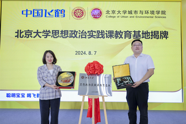 飛鶴乳業(yè)黨委副書記李玉蘋與北京大學城環(huán)學院副書記金鑫共同為北京大學思想政治實踐課教育基地揭牌