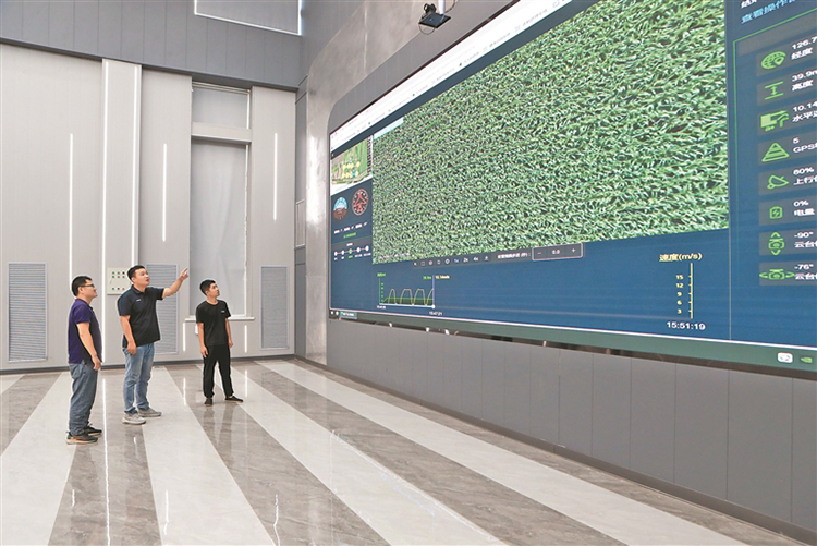 技術(shù)人員在數(shù)字農(nóng)業(yè)指揮大廳分析作物長勢。任忠良攝