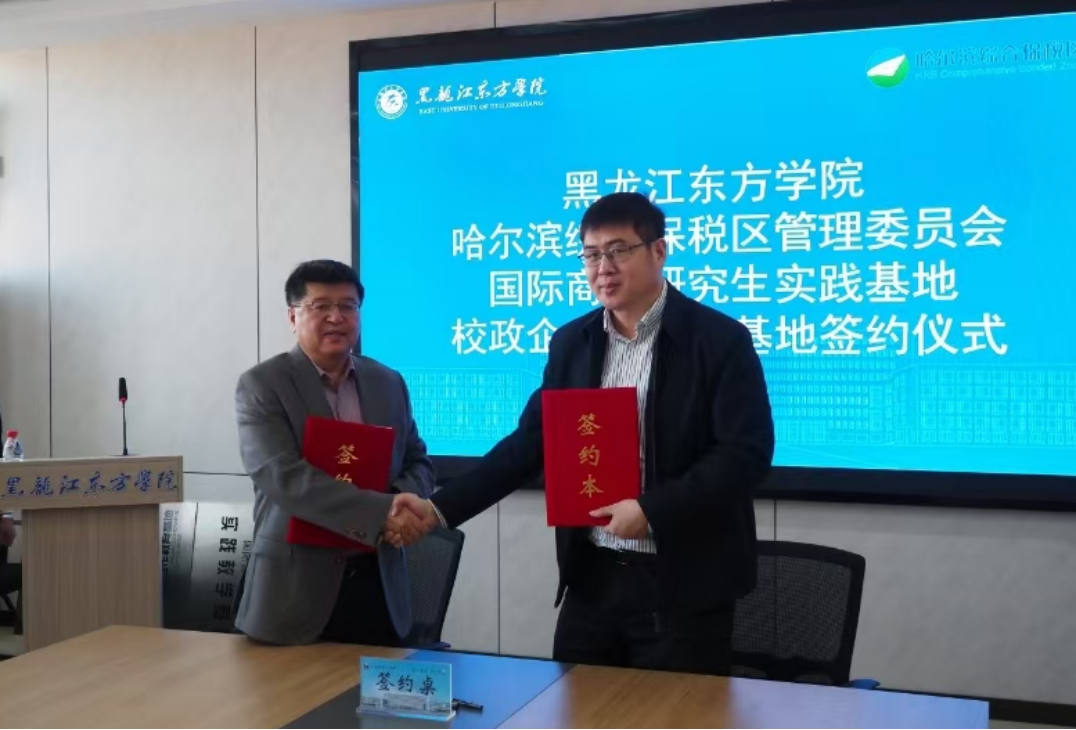黑龍江經濟網訊(記者李凌雪)11月20日,哈爾濱綜合保稅區(qū)與黑龍江東方學院舉行校政企產教研發(fā)展戰(zhàn)略合作協(xié)議簽約授牌儀式。哈爾濱綜合保稅區(qū)副主任張旭與黑龍江東方學院副校長程延江共同為國際商務研究生實踐基地、校企合作教育基地授牌并簽署合作協(xié)議。