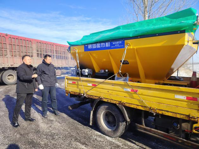 駐村工作隊第一時間聯(lián)系村“兩委”召開緊急會議,積極制定融冰除雪方案。同時工作隊充分發(fā)揮行業(yè)優(yōu)勢和責(zé)任擔(dān)當(dāng),隊長張馳向密山市交通運輸局黨組進行情況匯報,得到局黨組的大力支持,聯(lián)合交通運輸局公路事業(yè)發(fā)展中心,在設(shè)備和物料緊缺的情況下,為村里出動了融雪撒布機,并籌措了9余噸融雪劑供村里免費使用。