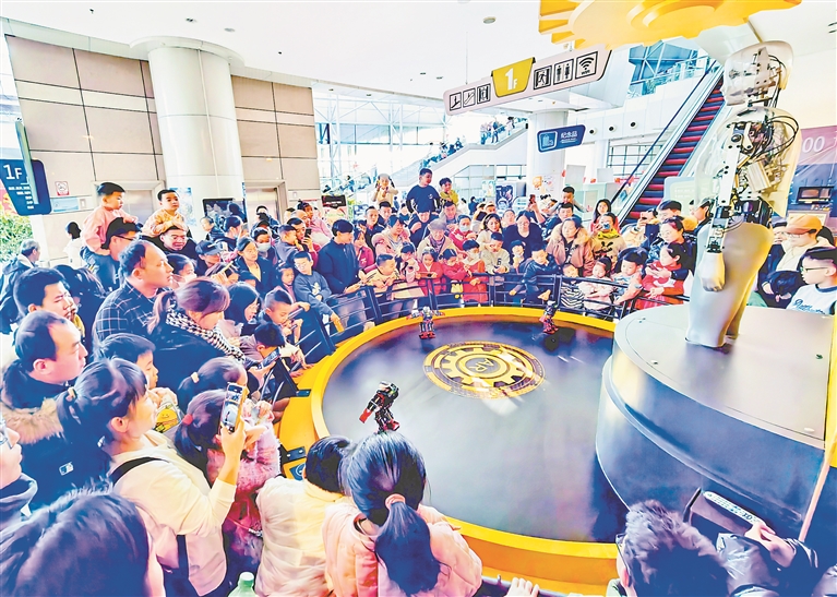 2日,省科技館內(nèi),許多家長(zhǎng)帶著孩子前來(lái)參觀。