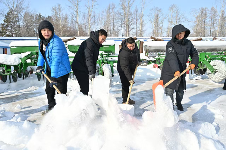 “眼下天氣逐漸回暖,為了避免氣溫上升造成積雪融化而形成冰層,影響后續(xù)工作,我們采取鏟車(chē)清雪、人工清邊的措施,確保將農(nóng)具場(chǎng)積雪徹底清理干凈,為農(nóng)機(jī)具檢修提供良好環(huán)境。”管理區(qū)工作人員說(shuō)。