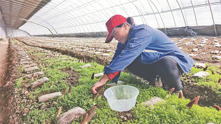 采摘羊肚菌。