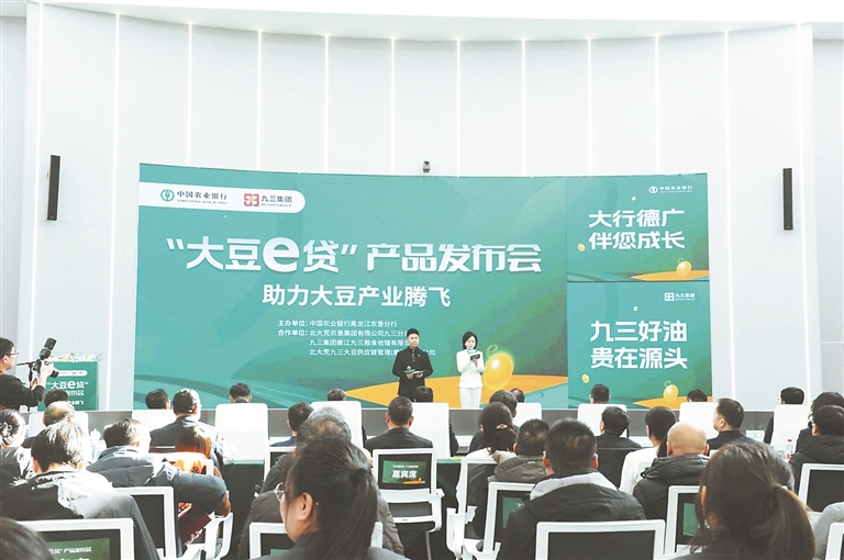 大豆是我國主要的糧油作物,也是食用植物油和植物蛋白質的重要來源。助力龍江大豆產業(yè)發(fā)展,促進大豆產能提升,離不開金融的大力支持。日前,中國農業(yè)銀行農墾分行舉辦“大豆e貸”產品發(fā)布會,該產品可為大豆產業(yè)鏈上的核心企業(yè)、上游供應商、下游經銷商以及廣大訂單種植戶提供全鏈條的融資服務,為打通大豆供應鏈資金渠道提供更優(yōu)融資選項,為全省大豆產業(yè)發(fā)展注入金融“活水”。