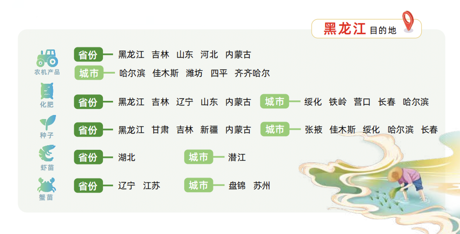 六月翩然而至,黑龍江的春耕工作也圓滿畫上句號。在這片廣袤無垠、沃野千里的黑土地上,一場爭分奪秒、科技賦能的春耕“戰(zhàn)役”正式收官。運滿滿最新發(fā)布的《2025年春耕生產(chǎn)物資公路貨運數(shù)字化報告》,清晰映照出黑龍江春耕背后的物資流動與產(chǎn)業(yè)活力,從農(nóng)機農(nóng)資到特色水產(chǎn)苗種,全方位見證著這片土地為保障國家糧食安全付出的不懈努力。
