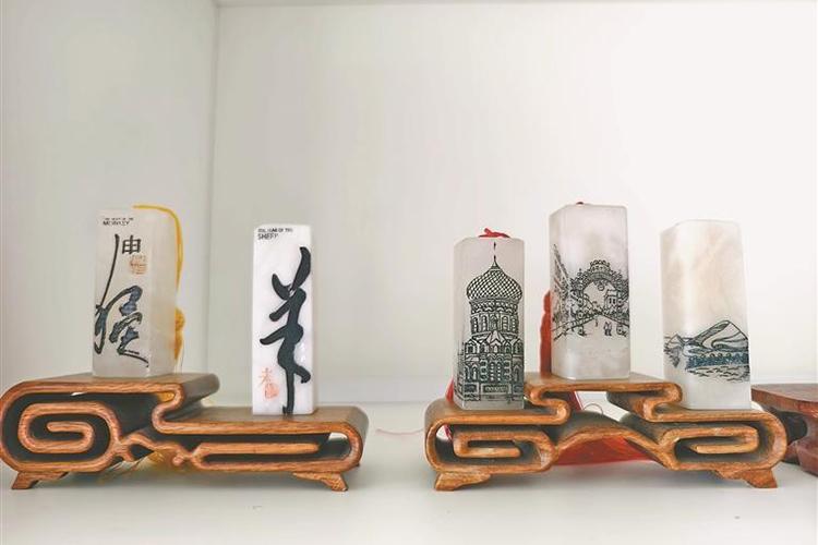 新區(qū)創(chuàng)意設(shè)計(jì)產(chǎn)業(yè)園與林大合作開(kāi)發(fā)的凍石文創(chuàng)刻章。