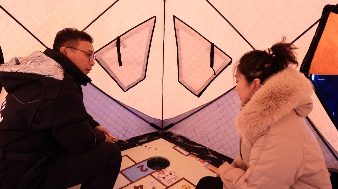 針對(duì)大興安嶺冬季漫長(zhǎng)、傳統(tǒng)產(chǎn)業(yè)“貓冬”的困境,林場(chǎng)大膽探索“冬釣+美食”融合模式,讓“冷資源”迸發(fā)“熱效應(yīng)”?!傲~、雅羅魚極其耐寒,冬天反而更活躍,是冰釣的理想魚種?!绷謭?chǎng)負(fù)責(zé)人劉賀龍介紹。林場(chǎng)精準(zhǔn)對(duì)接旅游需求,將冰封魚塘打造成專業(yè)化冬釣樂園,冰眼提前鉆好、釣區(qū)清晰劃分,帳篷里取暖設(shè)備齊全,“保姆式”服務(wù)讓新手也能輕松上手。釣罷歸來(lái),林間木屋內(nèi)早已備好鐵鍋燉魚的特色美食,游客圍爐品鮮,在林海雪原間體驗(yàn)“漁舟唱晚”的詩(shī)意生活。