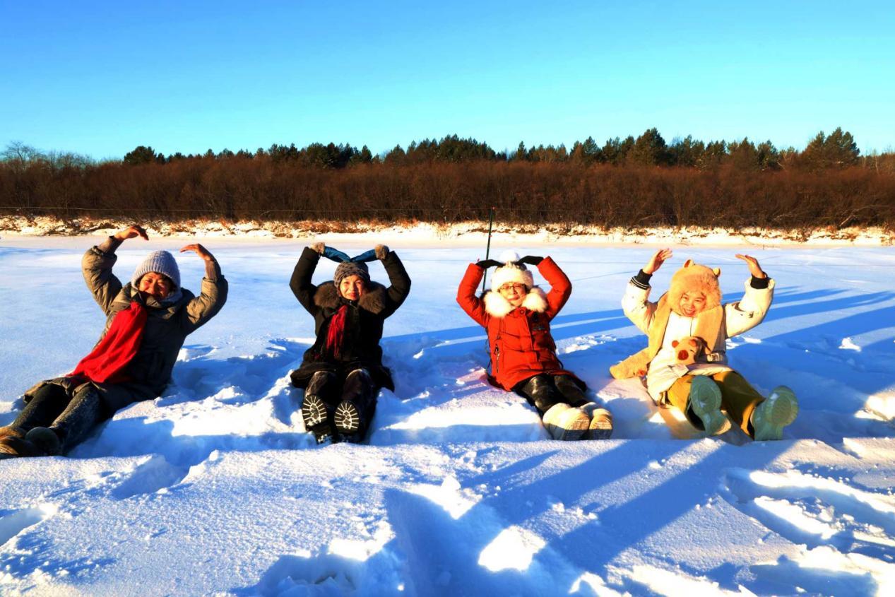 黑龍江省詩詞協(xié)會(huì)采風(fēng)團(tuán)成員在雙妃湖親身感受冰雪文化和驛站文化(王力 攝)