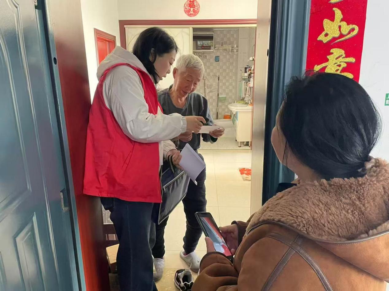 社區(qū)志愿者“敲門入戶”開展弱勢(shì)群體消防安全宣傳活動(dòng)(胡春磊 攝)