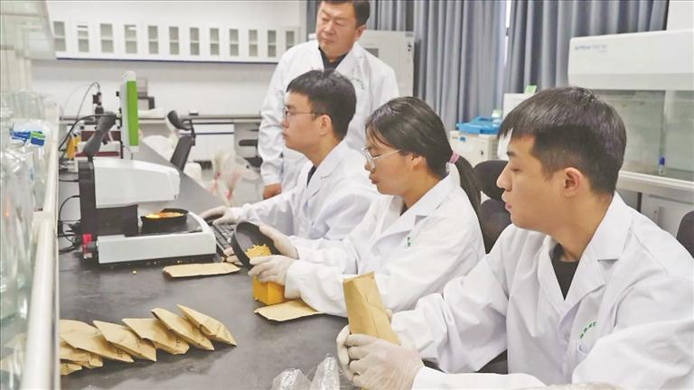 在國家現(xiàn)代農(nóng)業(yè)產(chǎn)業(yè)園的實驗室,來自東北農(nóng)業(yè)大學的研究生正在對大豆種子進行電腦數(shù)粒、離心分析密度等工作,為選育出高產(chǎn)、優(yōu)質(zhì)、多抗的專用大豆品種提供基礎(chǔ)數(shù)據(jù)支撐。