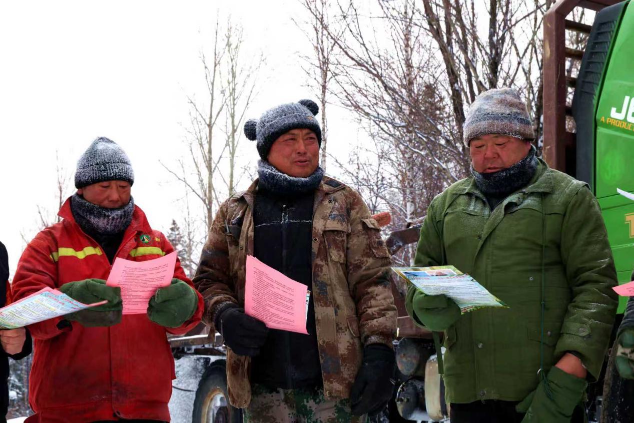 阿木爾林業(yè)局一線職工認(rèn)真閱讀保護(hù)野生動物宣傳單(王力 攝)