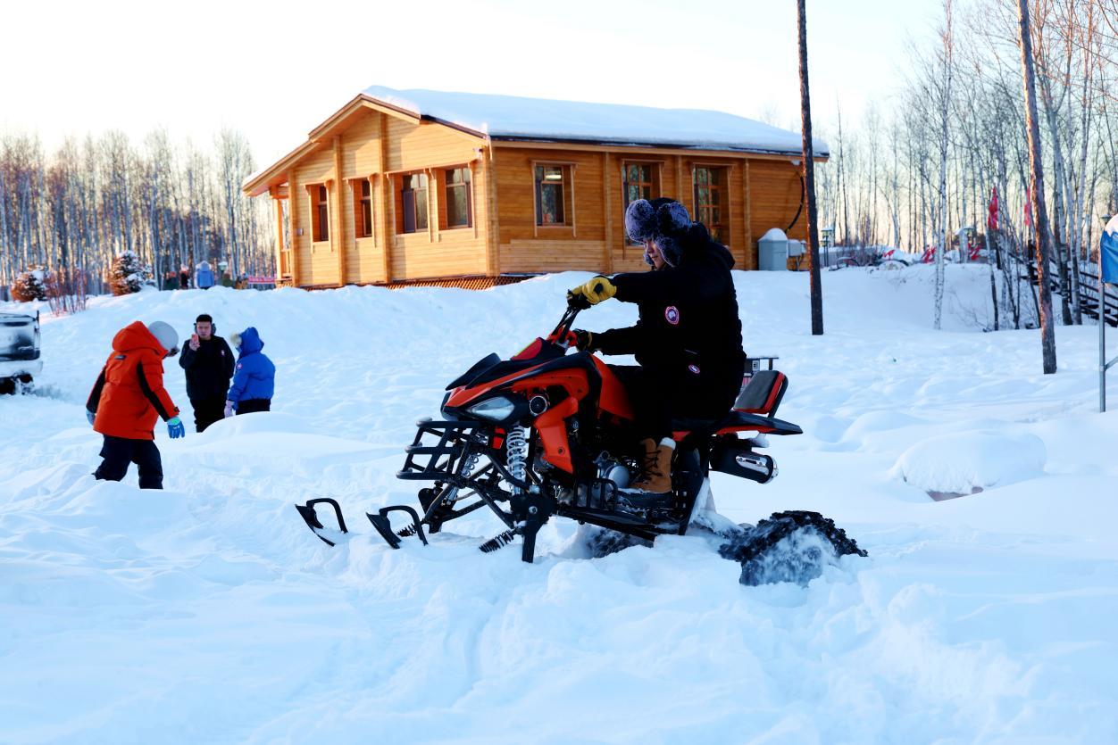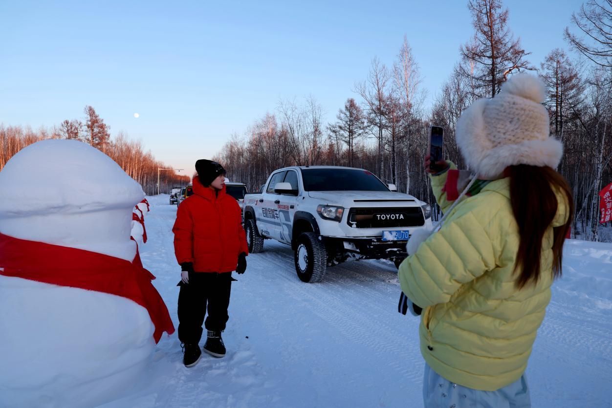 當(dāng)日中午,隨著車隊(duì)緩緩駛?cè)氡睒O島景區(qū)南門,美麗的雪地廣場瞬間被熱情點(diǎn)燃。游客們紛紛走下車,不顧零下數(shù)十度的嚴(yán)寒,或在松軟的雪地上玩起汽車漂移,或與雪人合影留念,或揚(yáng)起漫天雪花享受雪的輕撫,汽車馬達(dá)的轟鳴與歡聲笑語交織回蕩,讓這片銀裝素裹的天地化作歡樂的海洋。
