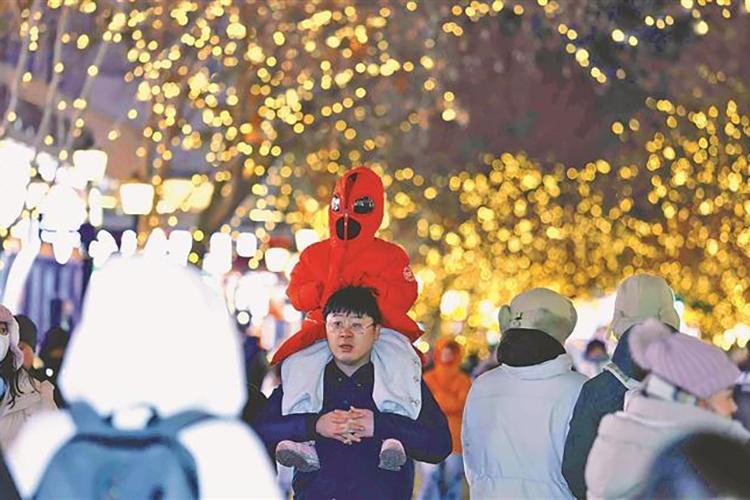 夜幕降臨,哈爾濱市中央大街悄然披上了一襲由光影精心織就的夢(mèng)幻霓裳。流光溢彩的燈光,細(xì)細(xì)勾勒著獨(dú)特建筑的穹頂輪廓。游客不同方言的贊嘆聲此起彼伏,交織在浪漫的氛圍中,共同奏響一曲迎接新春的歡快樂(lè)章。